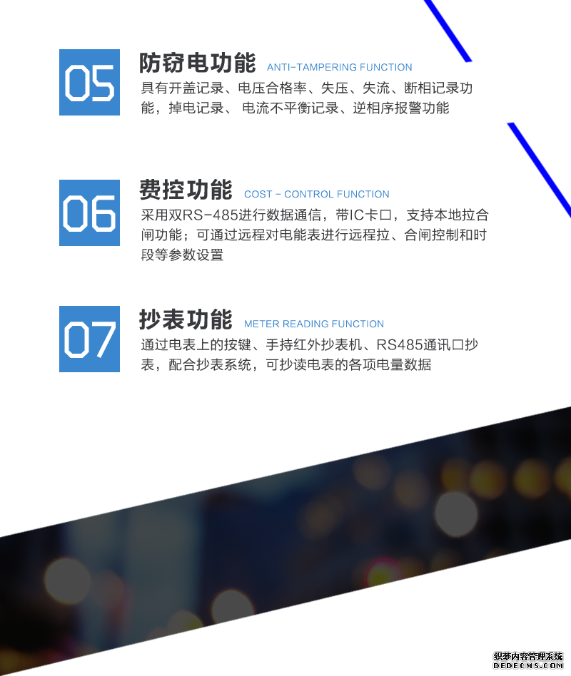 主要功能:有功,功率因素,有功功率,無功功能,四象限無功,電壓,電流,事件報警,費控