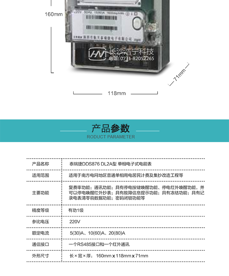 泰瑞捷dds876 dl2a單相電能表